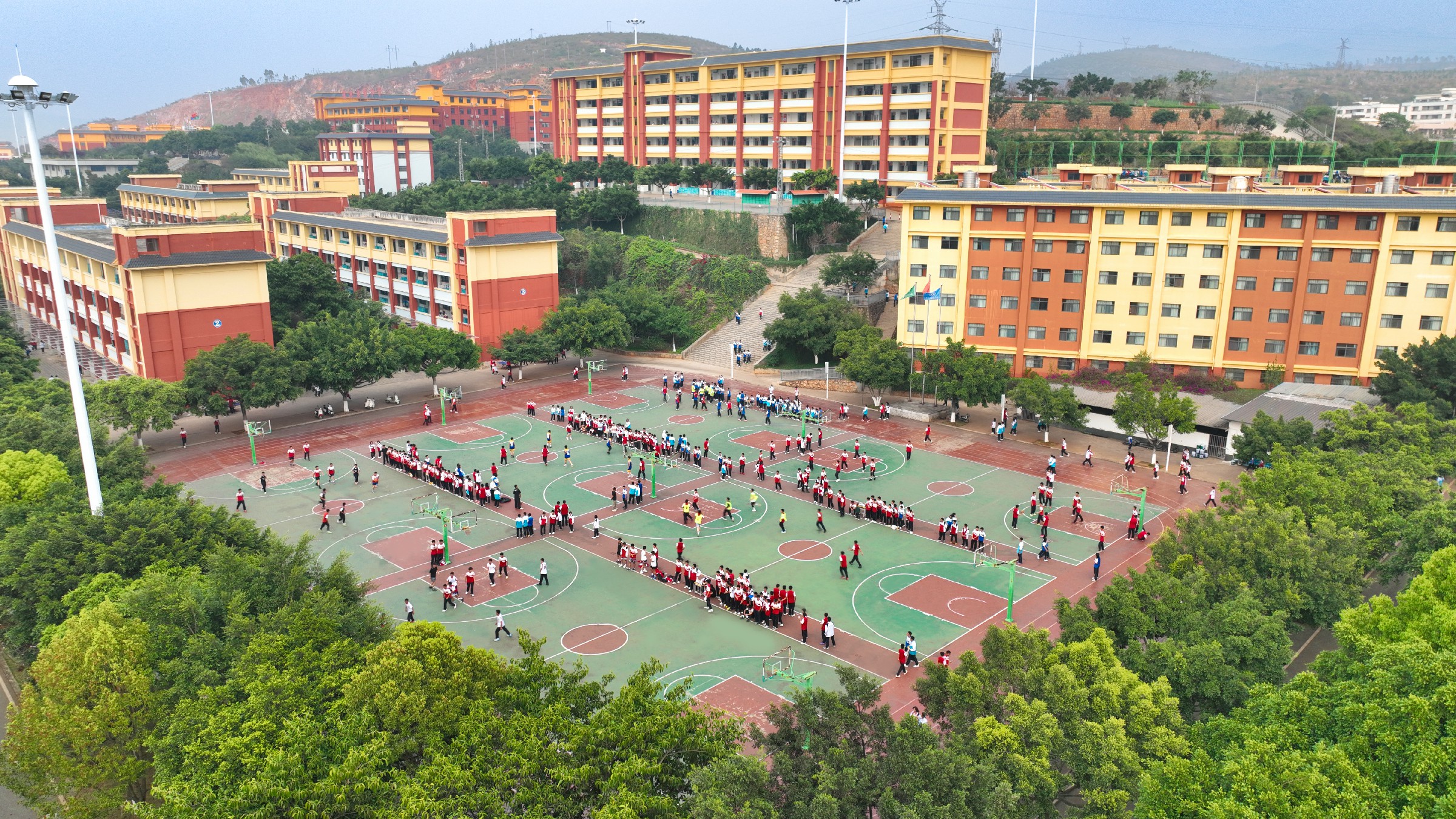 “动次打次!动次打次!”动感的旋律回荡在校园每个角落,轻快的舞步踏出蓬勃的青春节拍。课间时分,建水闻道高级中学操场上热闹非凡,同学们随着音乐打跳起舞,欢笑声、脚步声交织成动听的交响。为深入践行“健康第一”的教育理念,让学生在体育锻炼中享受乐趣、增强体质,近年来,建水闻道高级中学着力丰富校园大课间活动形式,将多元化体育项目系统性融入日常。其中,结合云南本土民族文化编排的“子啦嘞”民族打跳,因其强烈的