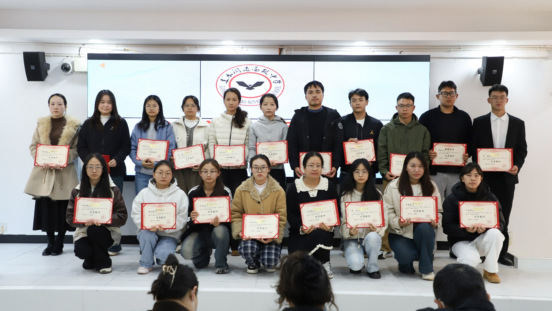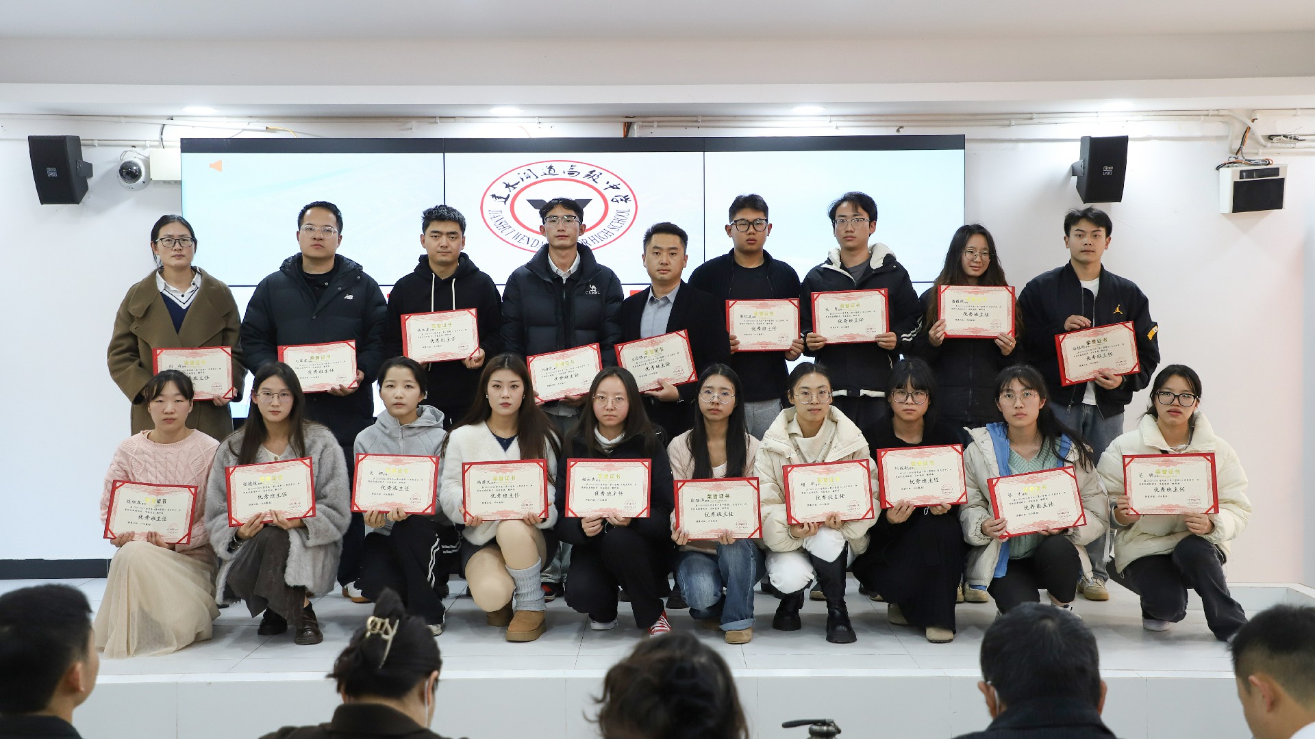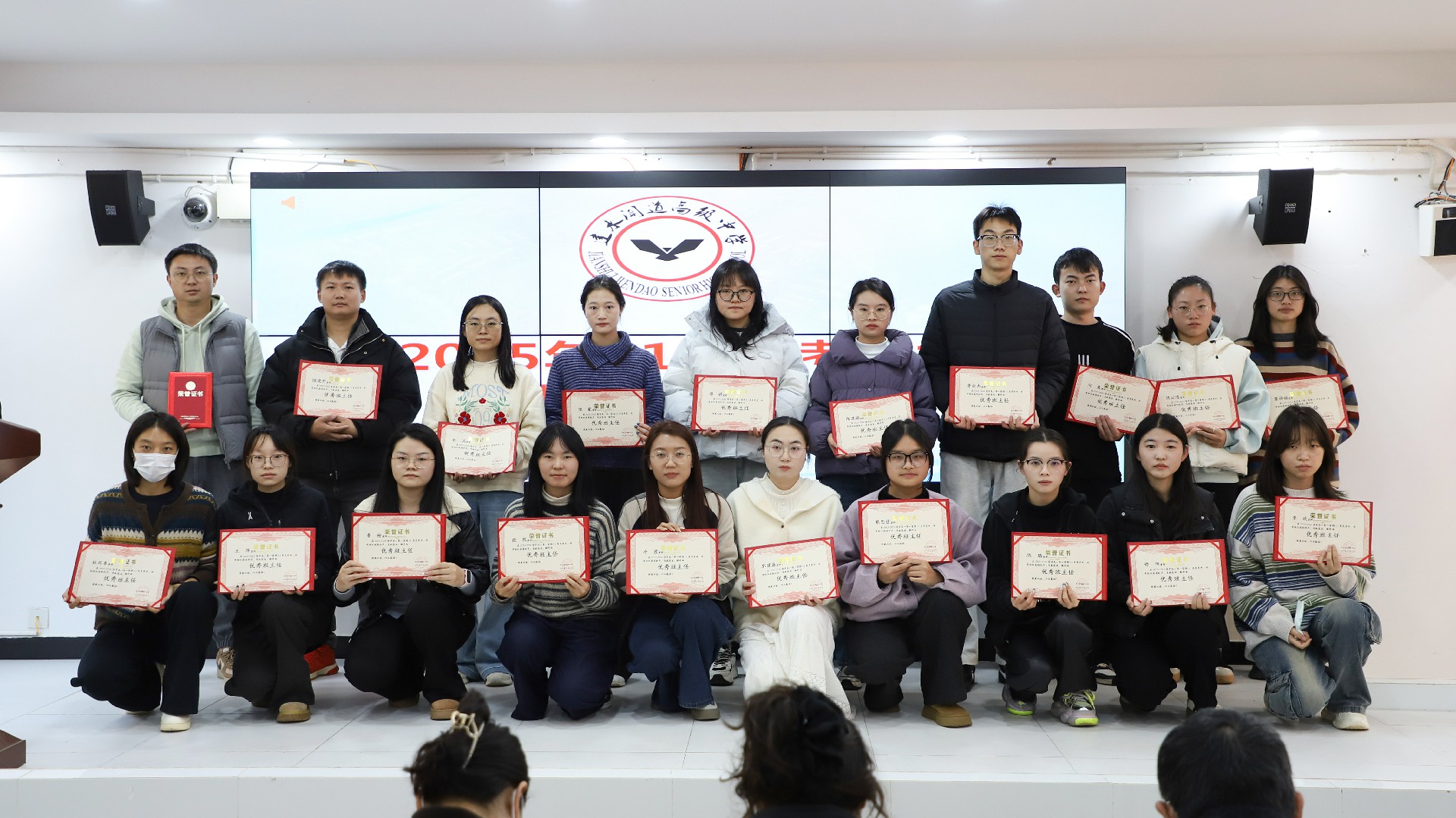 表扬环节,主持人宣读优秀教师、优秀班主任、优秀备课组长及教学能手名单,校领导为获奖教师颁奖。一张张证书既是对辛勤付出的肯定,更激励全体教师见贤思齐、争先创优。